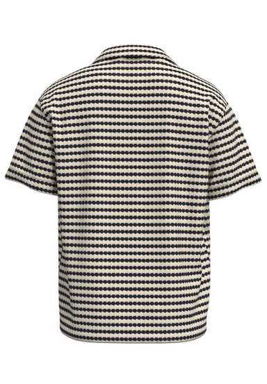 Short sleeve Jacquard knit overshirt designed for effortless layering. Throw it over a tee for an instantly polished holiday look. The textured kni...