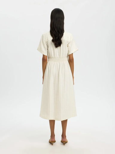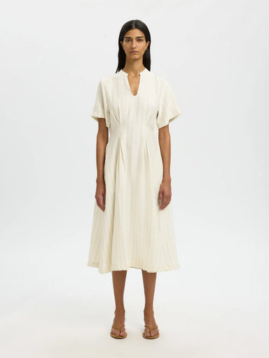 This summery dress definitely has a modern edge to it. With short sleeves and a v neck it has a lovely shape with the use of clever pleating on th...