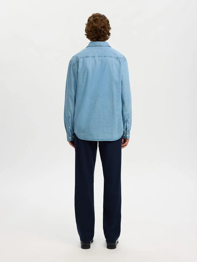 This washed denim look shirt has a soft feel and comfortable wear. Button through with a patch pocket. Shirt collar Chest pockets 100% Organic Cot...