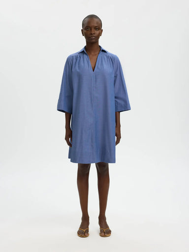 Such an easy dress - made from 100% organic cotton in a stunning blue. It has a collared v neck and hangs beautifully from the shoulders with 3/4 ...
