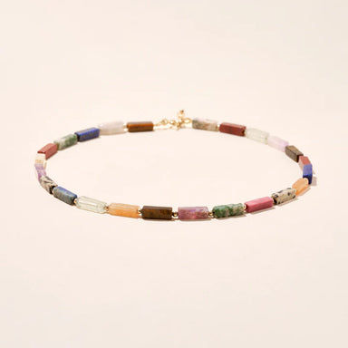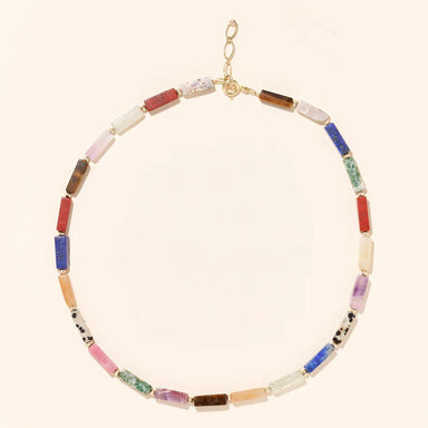 A pretty natural stone necklace with 14k gold adornments to complete your look this summer. The Baia necklace is composed of natural tube-shaped s...