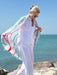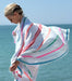 An energised and uplifting piece, featuring embroidered stripes in neon pink, green, blue, orange and red. The sides have a self fringe that give it a boho vibe. Wear it as a scarf, shawl or wrap.