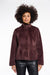 This short faux fur jacket has faux suede lining.  The jacket features a high collar, hidden plush button closure and invisible side slit pockets.
