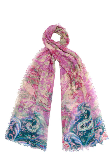 A plethora of pretty pinks in a swirling marbled design. Teal-tipped ends dial down the sweetness with a 4 sided self fringe ends to give it that r...