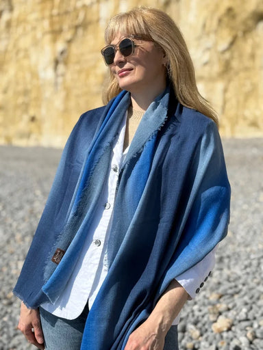 Stylish ombre blues in a wool modal blend that is perfect for the new season. The soothing indigo tones will team beautifully with your favourite d...