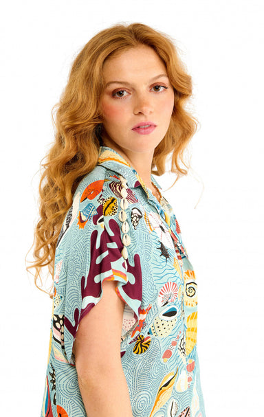 This boxy shaped shirt from Wild has their iconic coral print emblazoned upon it - the design is awash with all kinds of sea life - add to that a l...