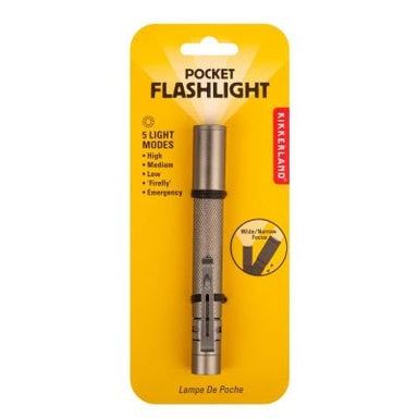 This durable mini flashlight has 5 modes, adjustable focus, and a pocket clip. Requires 2 AAA batteries (not included). Material: aluminum alloy, c...