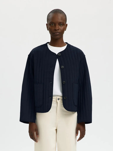 This lightweight, quilted jacket is perfect for Spring. With a round neck and patch pockets it's ideal for wearing with jeans or equally over a dr...