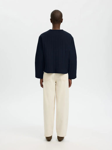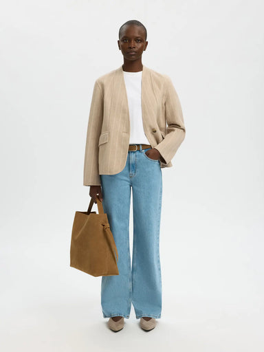A very cool spring jacket from Danish brand Selected. In a soft neutral colour with fine stripe it;s soft and cosy yet ideal for this time of year...