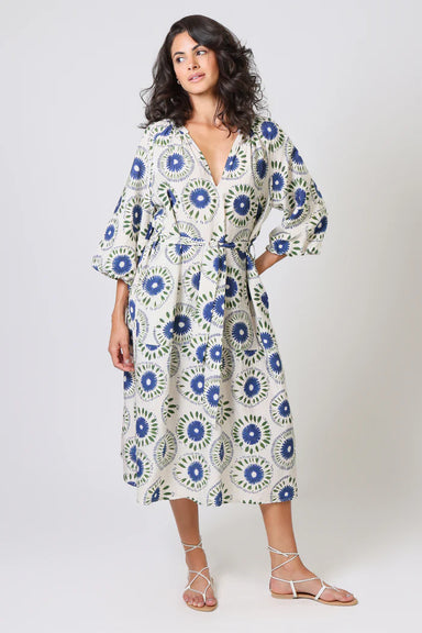 The Glee Dress has a perfect casual summer vibe in this white blue and green print, which makes it so easy to wear. With long balloon sleeves and a...