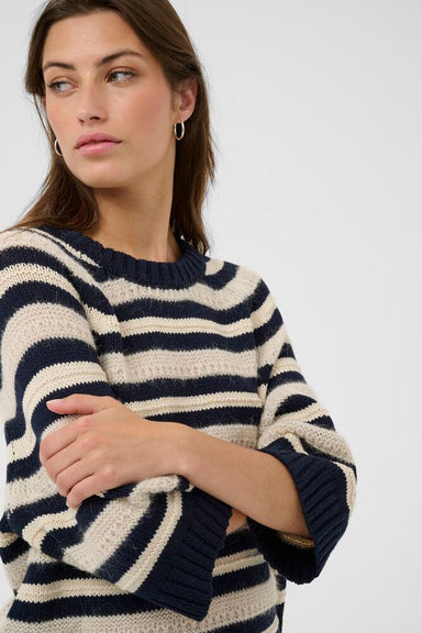 This striped knit has a boxy silhouette and a textured knit giving you just that something a little bit different. It has three quarter length slee...
