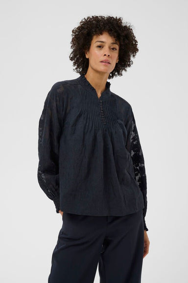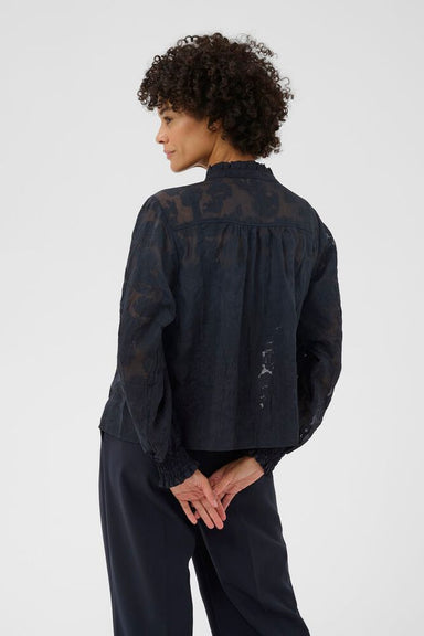 This beautiful blouse has a relaxed silhouette, stand up collar, button detailing and a semi sheer fabrication. Designed to be worn loose but can ...