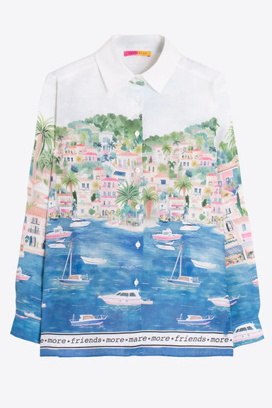 Bring a touch of the Med to your Summer wardrobe! This wonderful shirt is an homage to the sea scape of Puerto Banus. Palm trees, sea, bobbing bo...