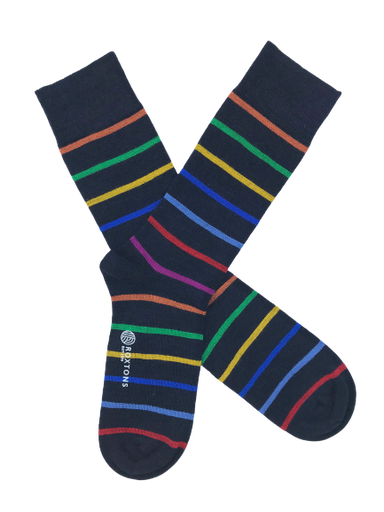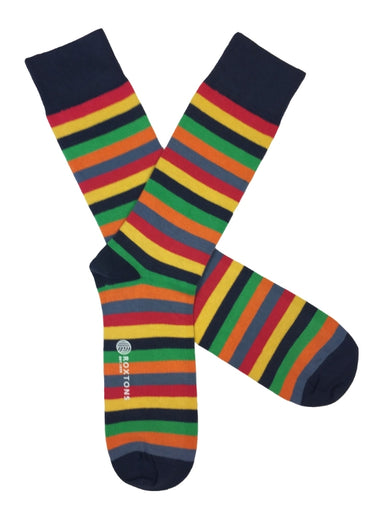 Multi stripe cotton ankle socks, in a narrow striped design with contrasting heel and toe in a choice of classic and fun colour combinations 80% Co...