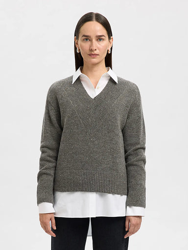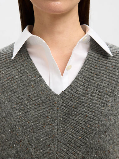 Cosy V neck knit in a beautiful "Donegal" style knit. Multi flecks of colour add some real interest to this classic piece. V neck with deep ribbe...