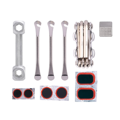 Toss this handsome tin in your backpack whenever you head out on your bike and you'll be prepared for anything. Includes: 6 headed allen set, patch...