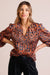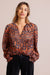 The Truce shirt is a classic chiffon shirt, with a V-neck and soft gathering at the neckline. The loose sleeves are finished with an elasticated frill cuff, giving the shirt a beautifully relaxed silhouette. So unique in this bold orange and blue print fabric. Unlined.