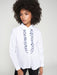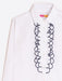 Strikingly simple but wow! This adorable white poplin shirt with vertical ruffles and a navy blue embroidered edge is a classic with a definite twist. On trend and the ideal piece to wear with a pair of jeans or smarter trouser.